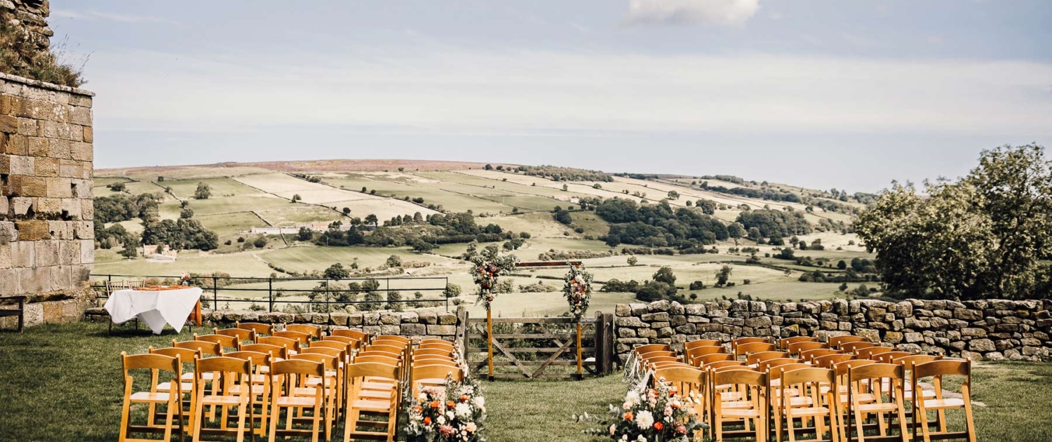Your day with us begins in the gardens of Danby Castle, where ancient stone walls open onto sweeping views of the North York Moors. Weather permitting, it’s here, beneath the sky, that we’ll exchange our vows.